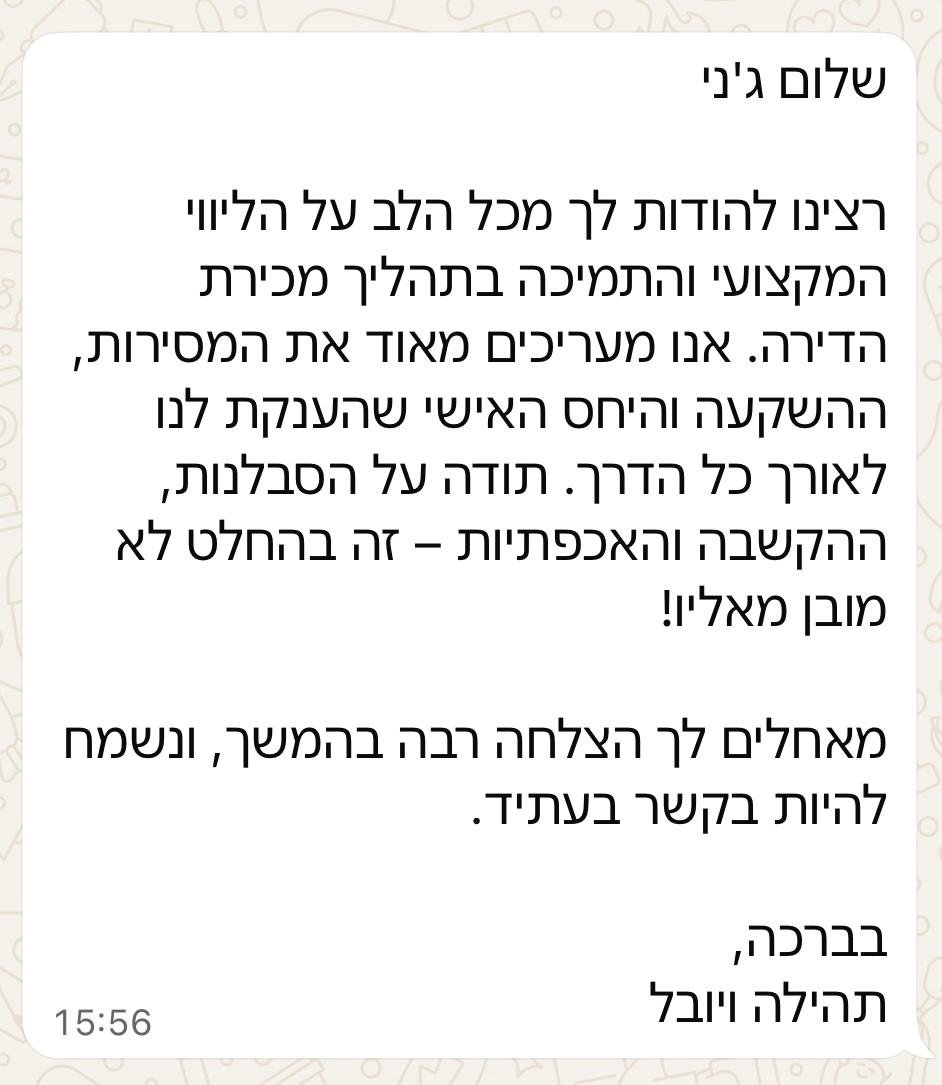 אצלי תקבלו ליווי אישי וזמינות מלאה – גם בווטסאפ.