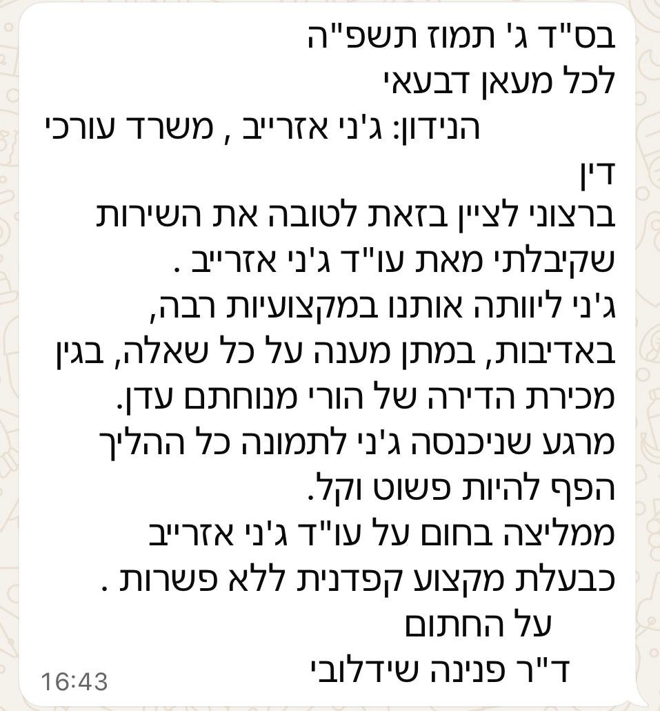 נעים להכיר שמי עו"ד ג'ני אזרייב,